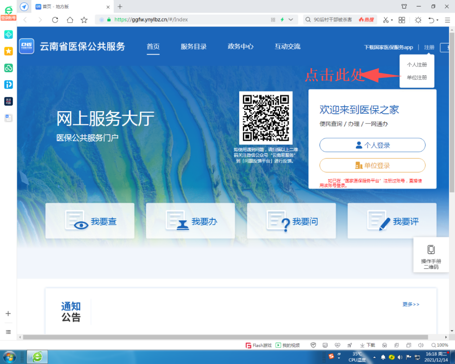 进入网上服务大厅界面(https://ggfw.ynylbz.cn)